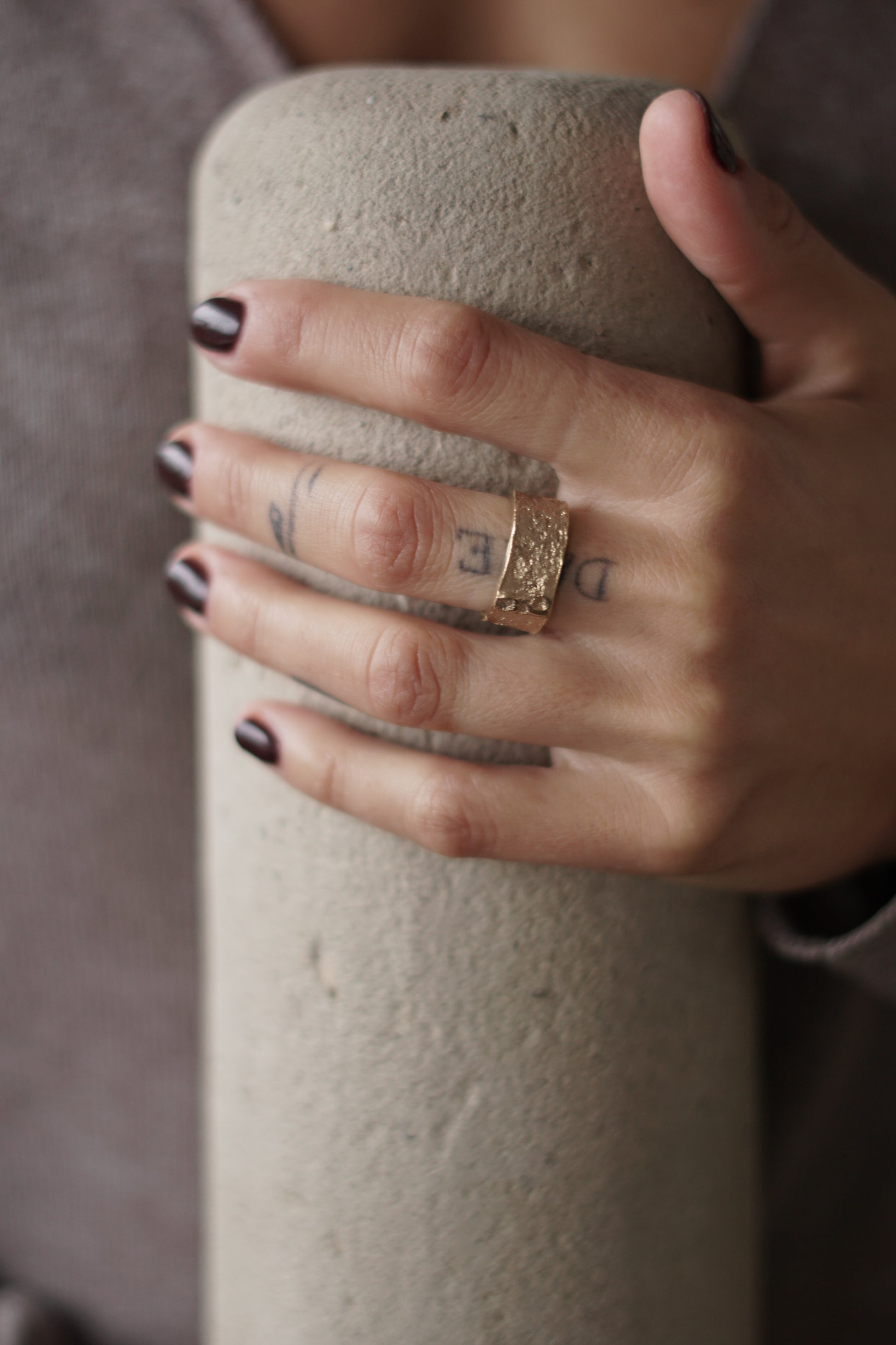 Anello con texture sabbia in argento 925 / argento 925 placcato oro 24kt.