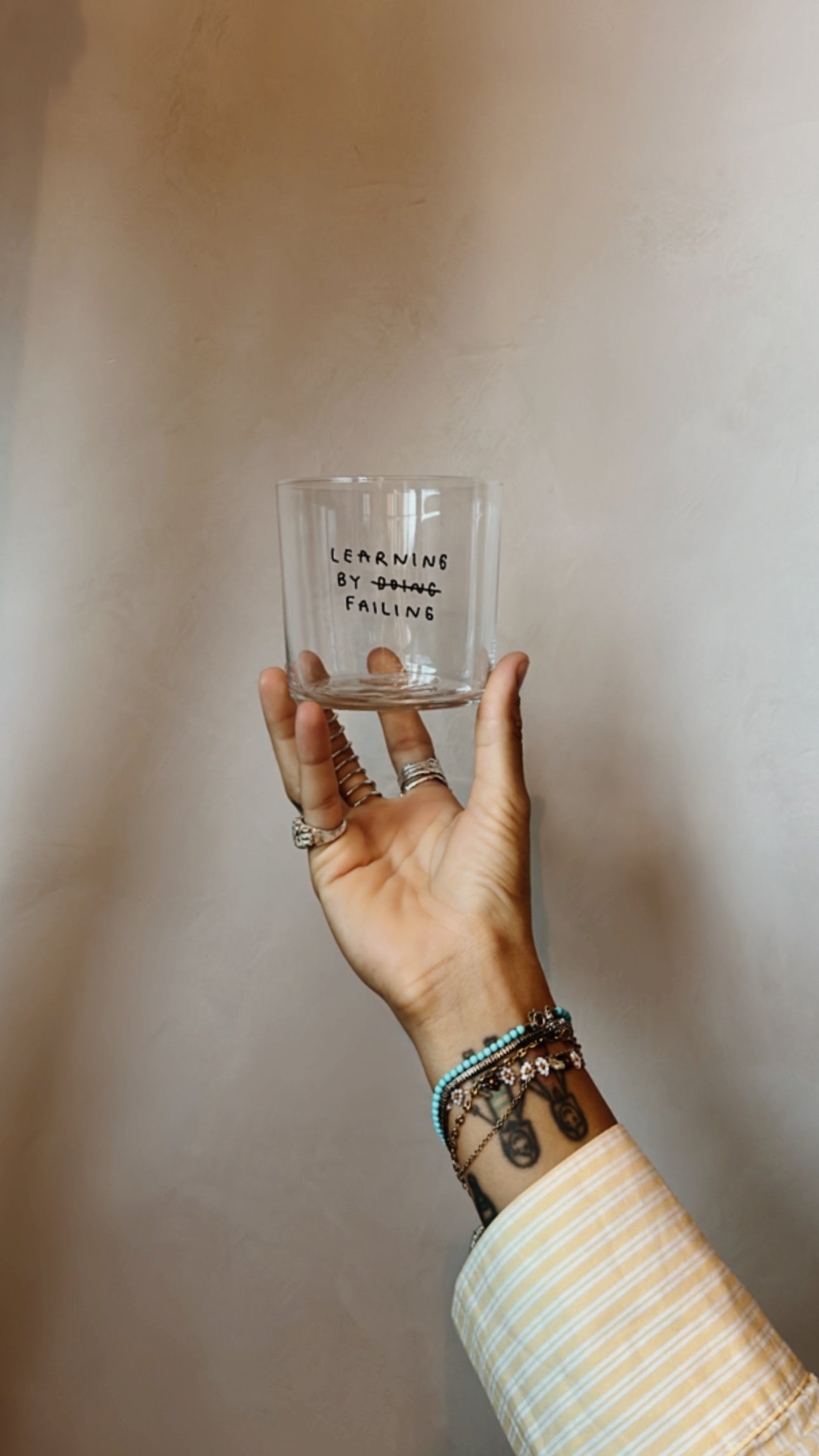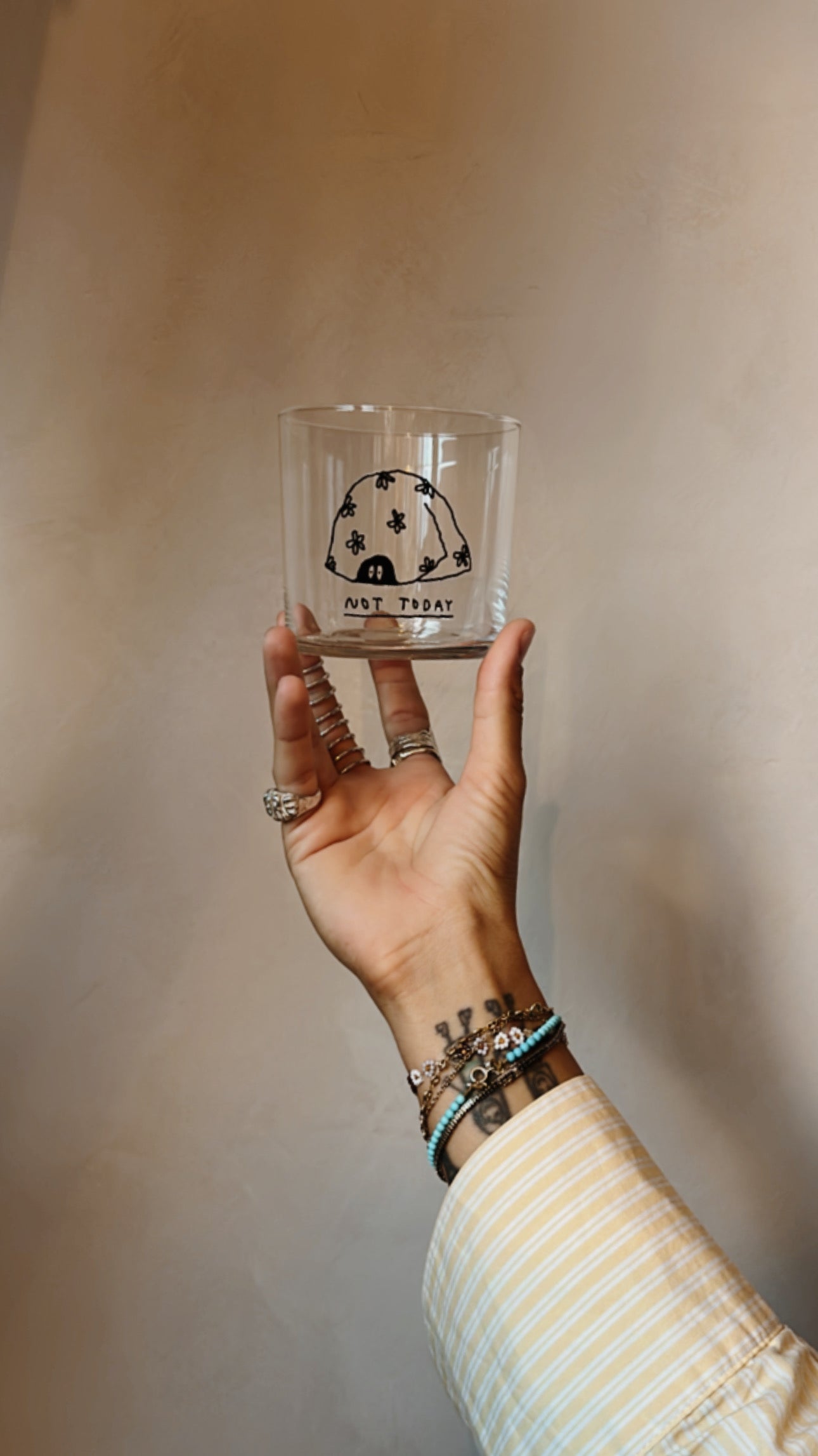 Bicchiere in vetro con illustrazioni create dall'illustratrice tedesca Johanna Schwarzer.