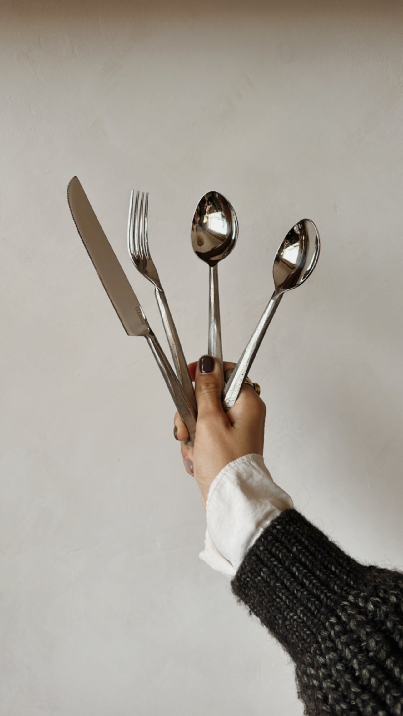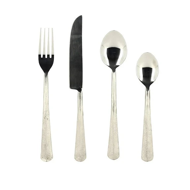 Posate in acciaio inossidabile con manico martellato.